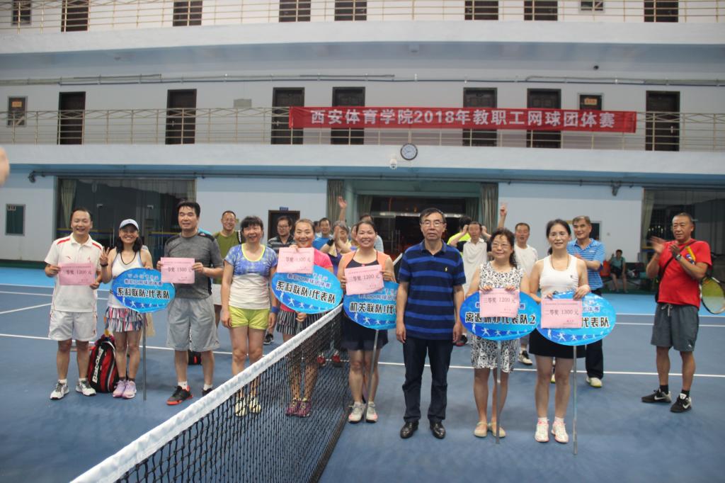 我院2018年教职工网球团体赛,于5月23日在学院网球馆开赛,经过5周75场紧张激烈的比赛,于6月20日晚圆满落幕。最终系科联队二荣获冠军,老干联队一荣获亚军,系科联队一荣获季军,机关联队一、机关联队二和老干联队二分获4—六名。