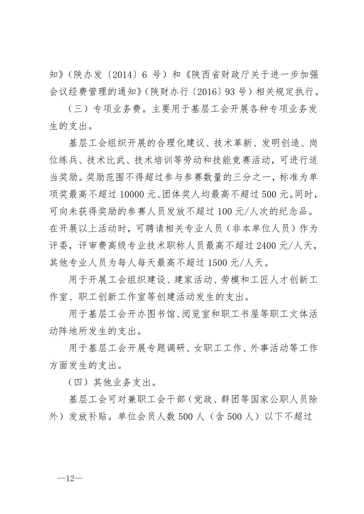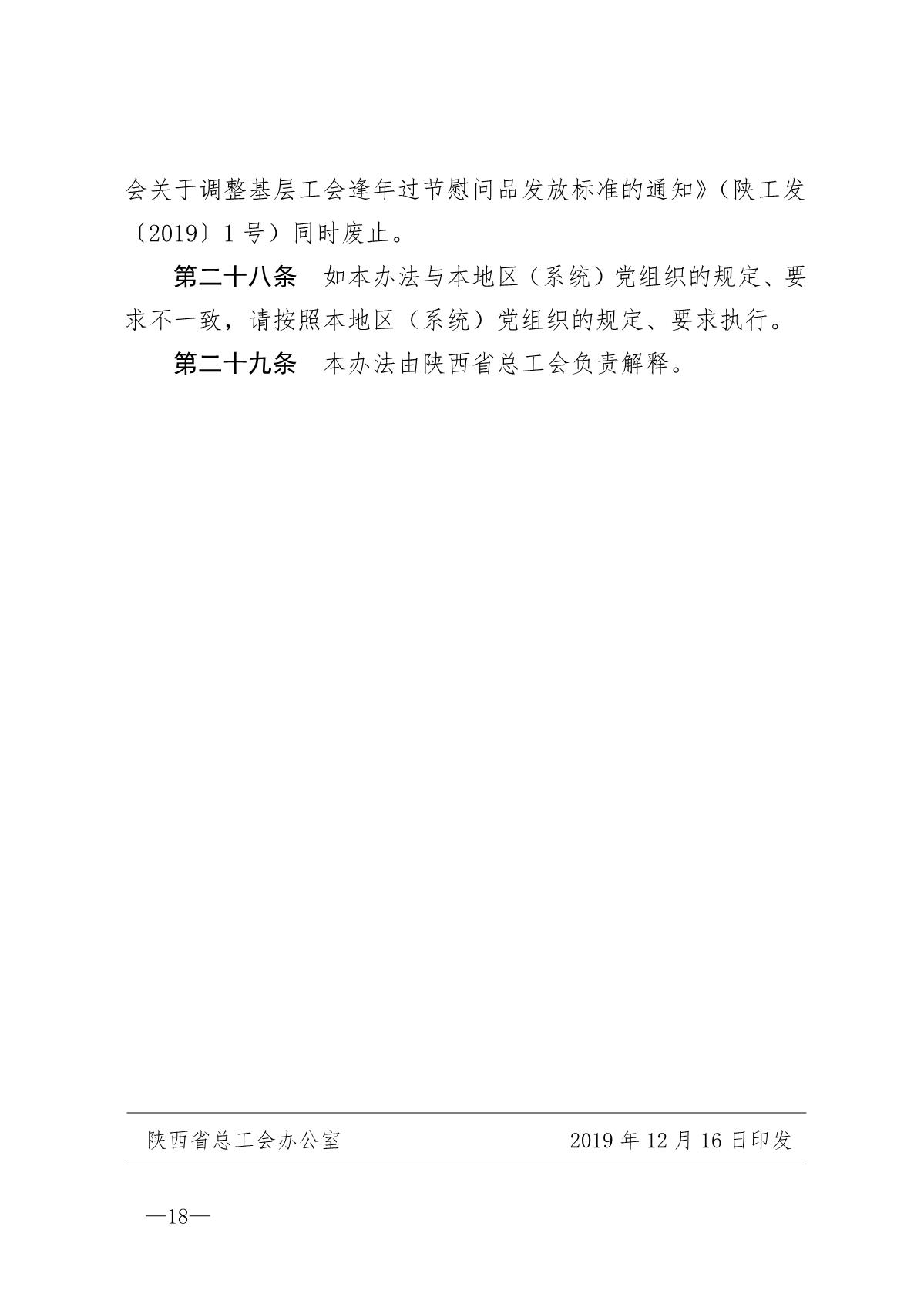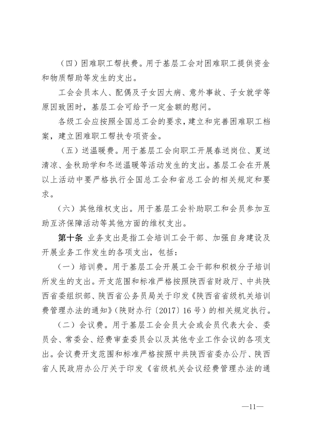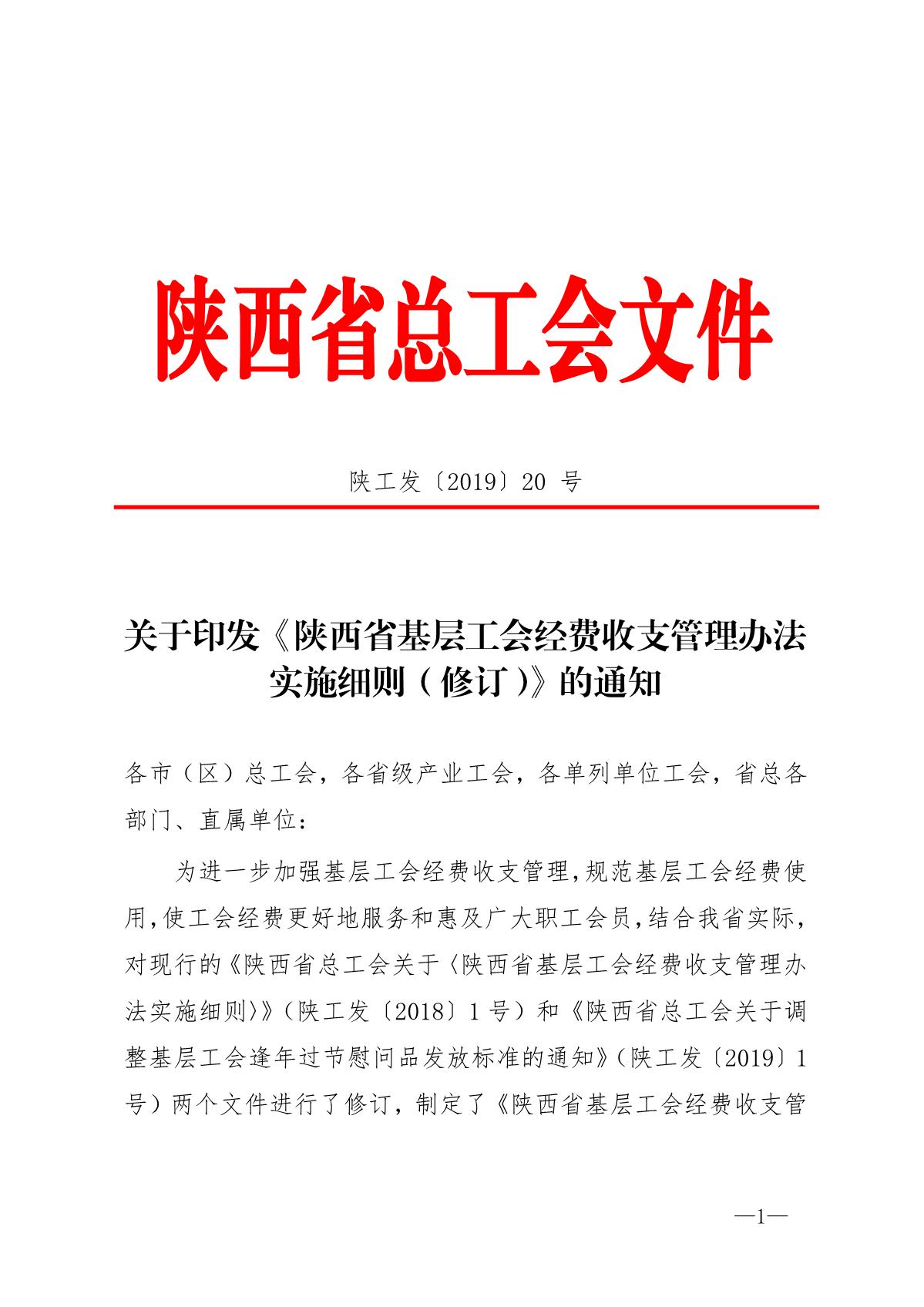 《陕西省基层工会经费收支管理办法实施细则》陕工发【2019】20号