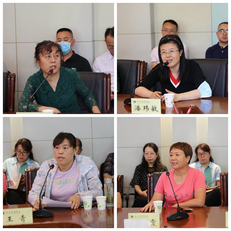 教师代表张英、潘玮敏、王青、杨柳霞发言