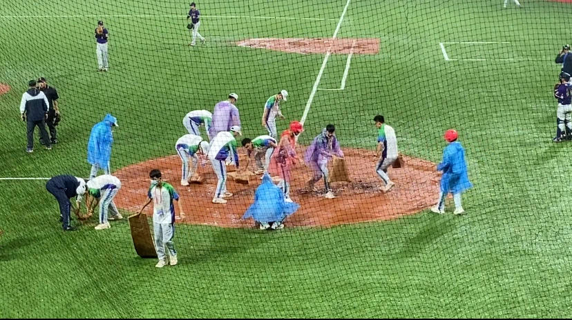 运动员们在雨中比赛