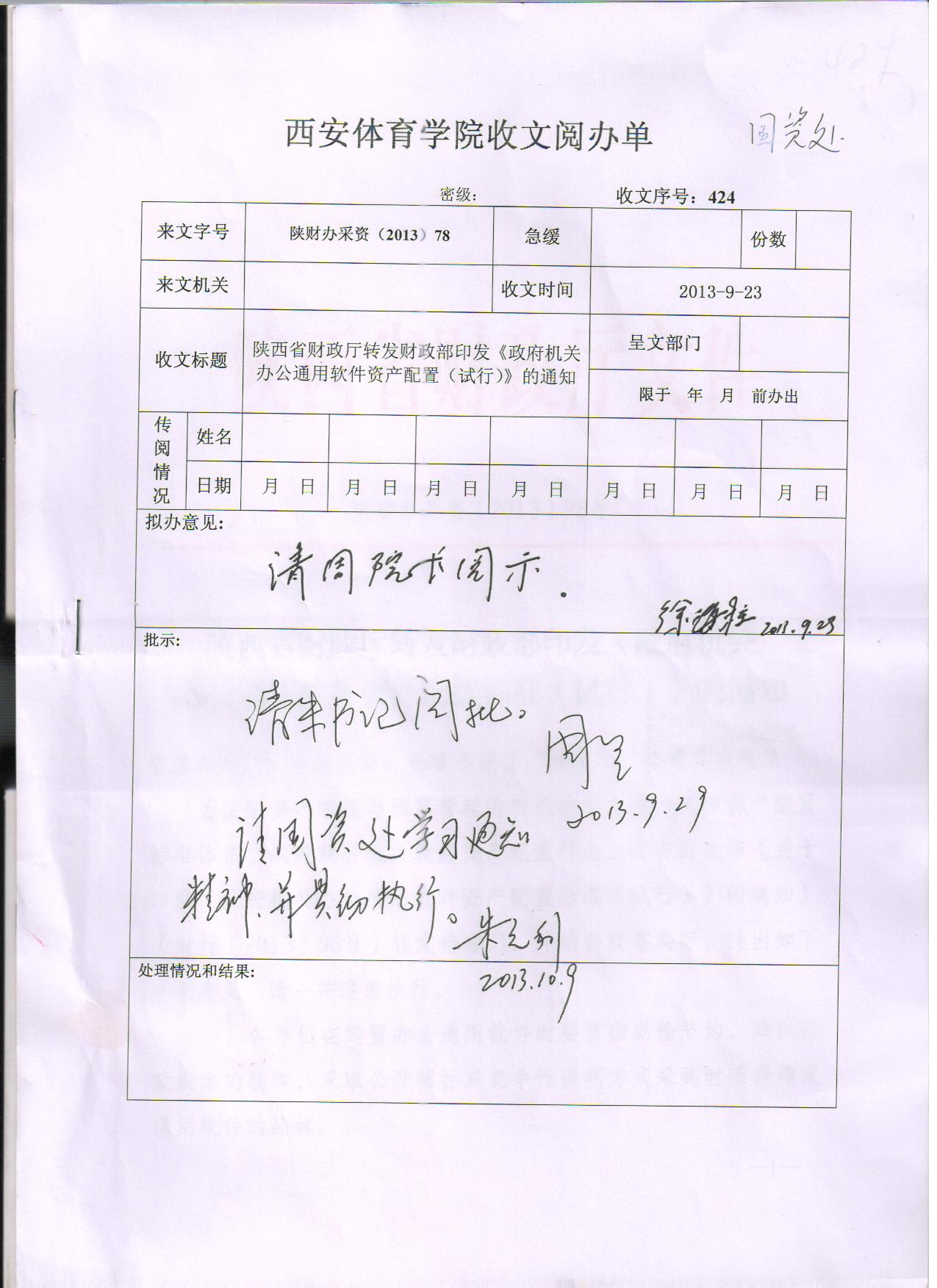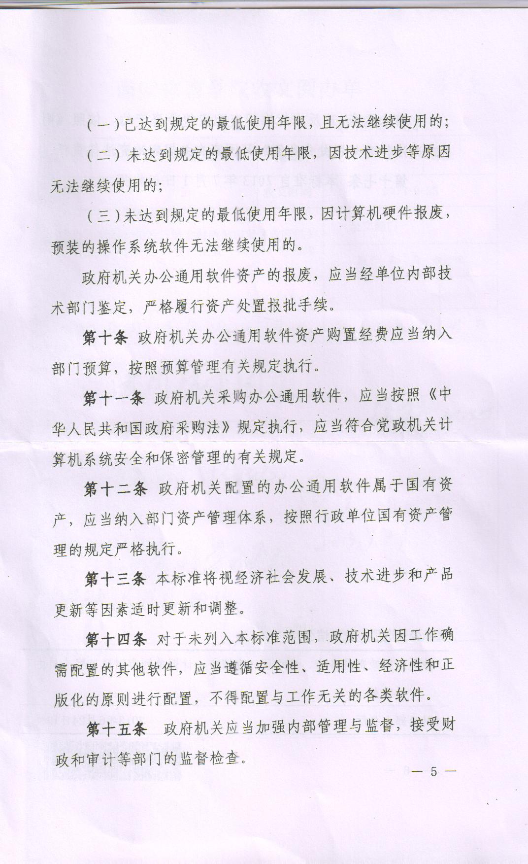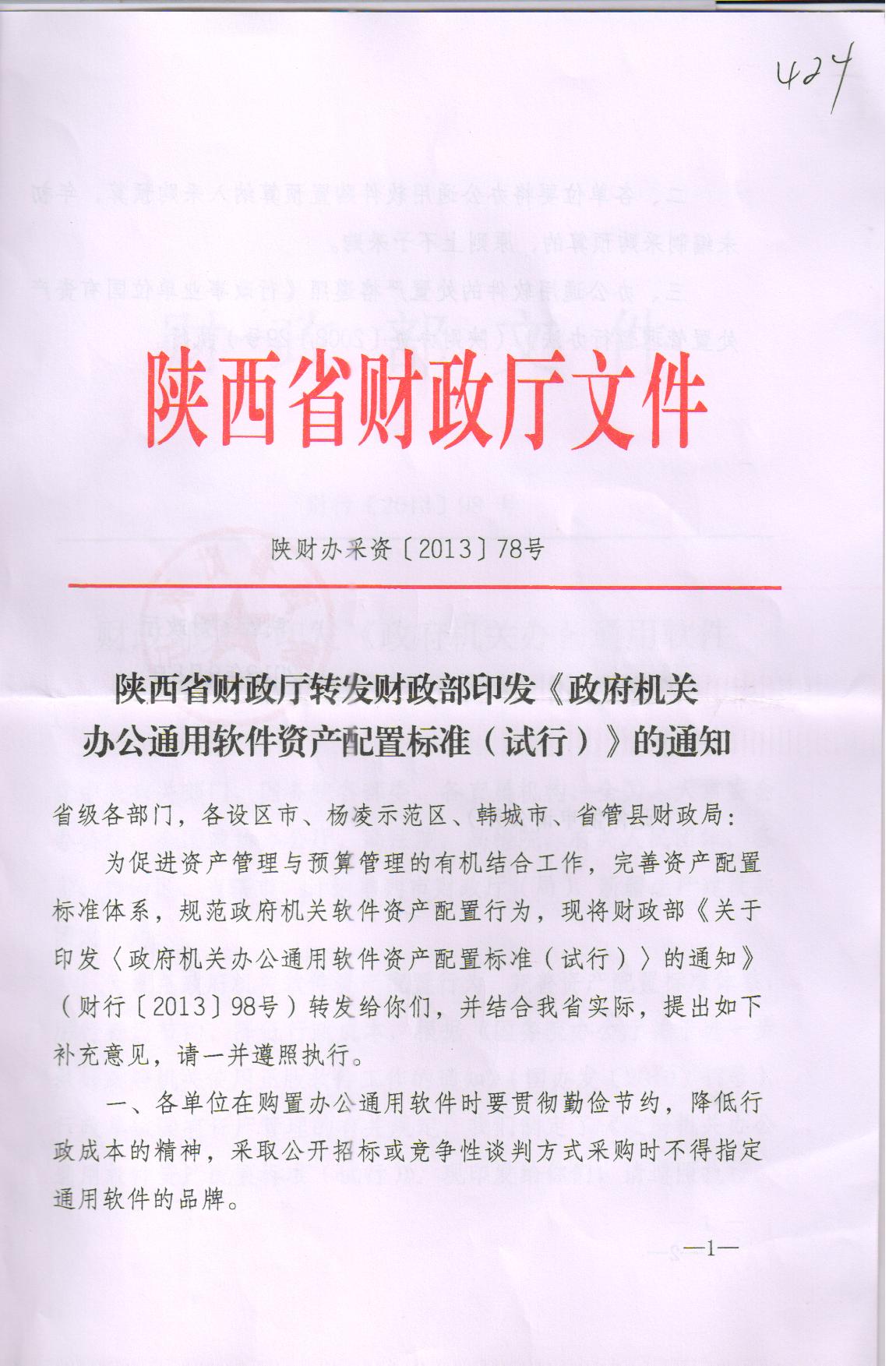 陕西省财政厅转发财政部印发《政府机关办公通用软件资产配置(试行)》的通知