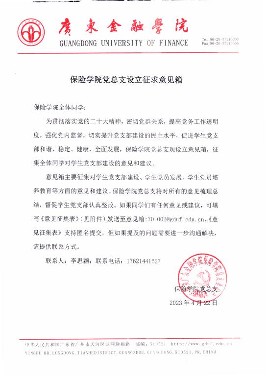 保险学院党总支设立征求意见箱