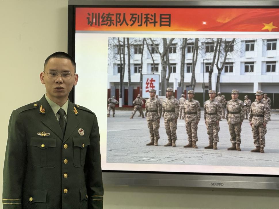陈柱基同学曾服役于北京武警部队,他通过精心准备的图片,生动地展示了在部队期间参与队列训练、防爆演练以及冬奥会安保等重要任务的场景。他说到,部队生活虽然充满了艰辛,但却苦中有乐、苦犹荣。“400 米障碍带来的挑战,集体生日时感受到的温暖,抢险救灾中肩负的担当,这一切都让我深刻体会到了责任的重量以及自身的成长。” 陈柱基还提到,退伍后凭借专项计划考研加分政策,或是参与公务员定向招录,都能为自己的未来发展开拓更广阔的道路。