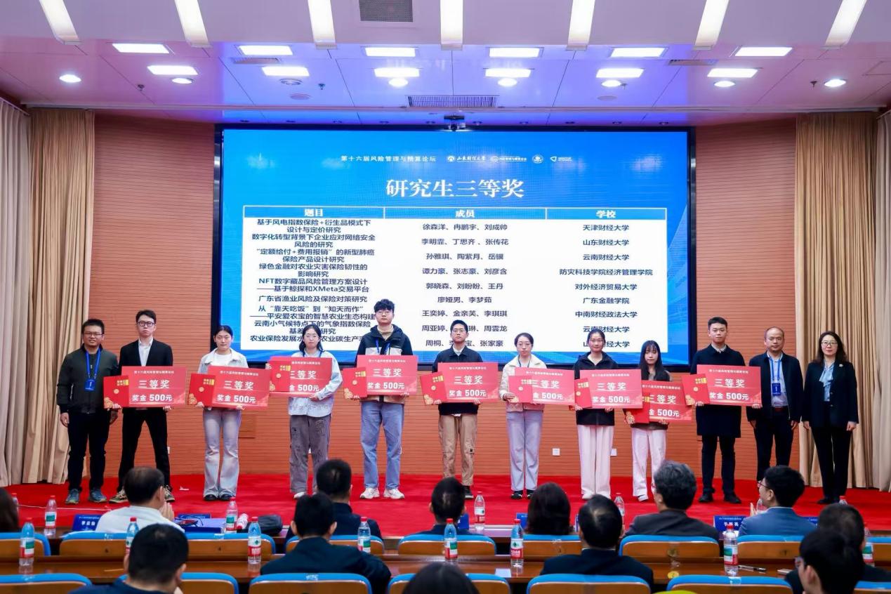 此次论坛为全国风险管理与精算领域搭建了高质量的学术交流与成果展示平台,充分彰显了人工智能时代精算学科跨界融合、创新发展的广阔前景。我院学子在竞赛中的优异表现,不仅为学校赢得了荣誉,更锻炼了学生的学术研究能力与实践创新能力。未来,我院将持续深化精算学科建设与人才培养模式改革,积极搭建学术交流平台,助力学子在专业领域持续成长,为行业发展输送更多高素质复合型人才。