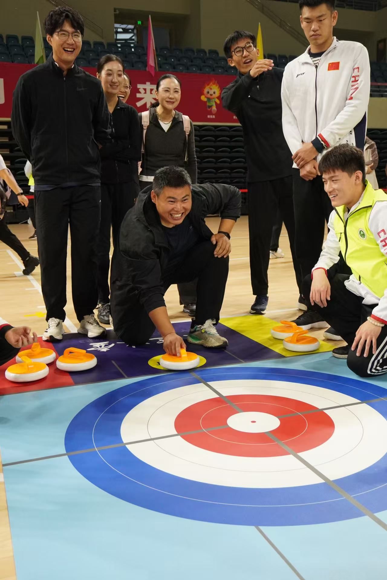 作为本次运动会的亮点项目之一,赛场特别设置了“旱地冰壶”等兼具趣味与策略的项目,吸引了众多教职工的积极参与,完美地将冰雪运动的智慧与魅力带到身边,这正是我校积极响应“带动三亿人参与冰雪运动”号召、普及与发展冰雪项目的一次生动实践。