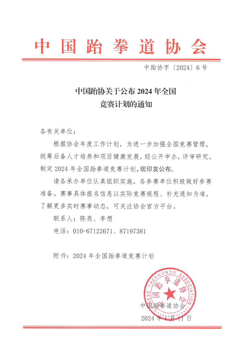 中国台协关于公布2024年全国竞赛计划的通知