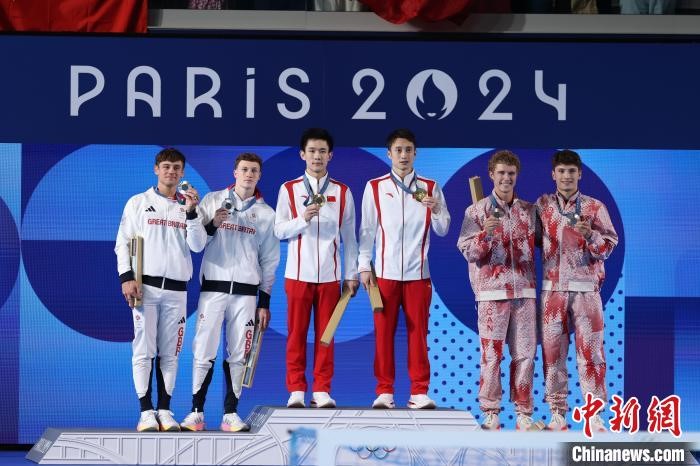 巴黎奥运会跳水男子双人10米台颁奖仪式中新社记者富田摄