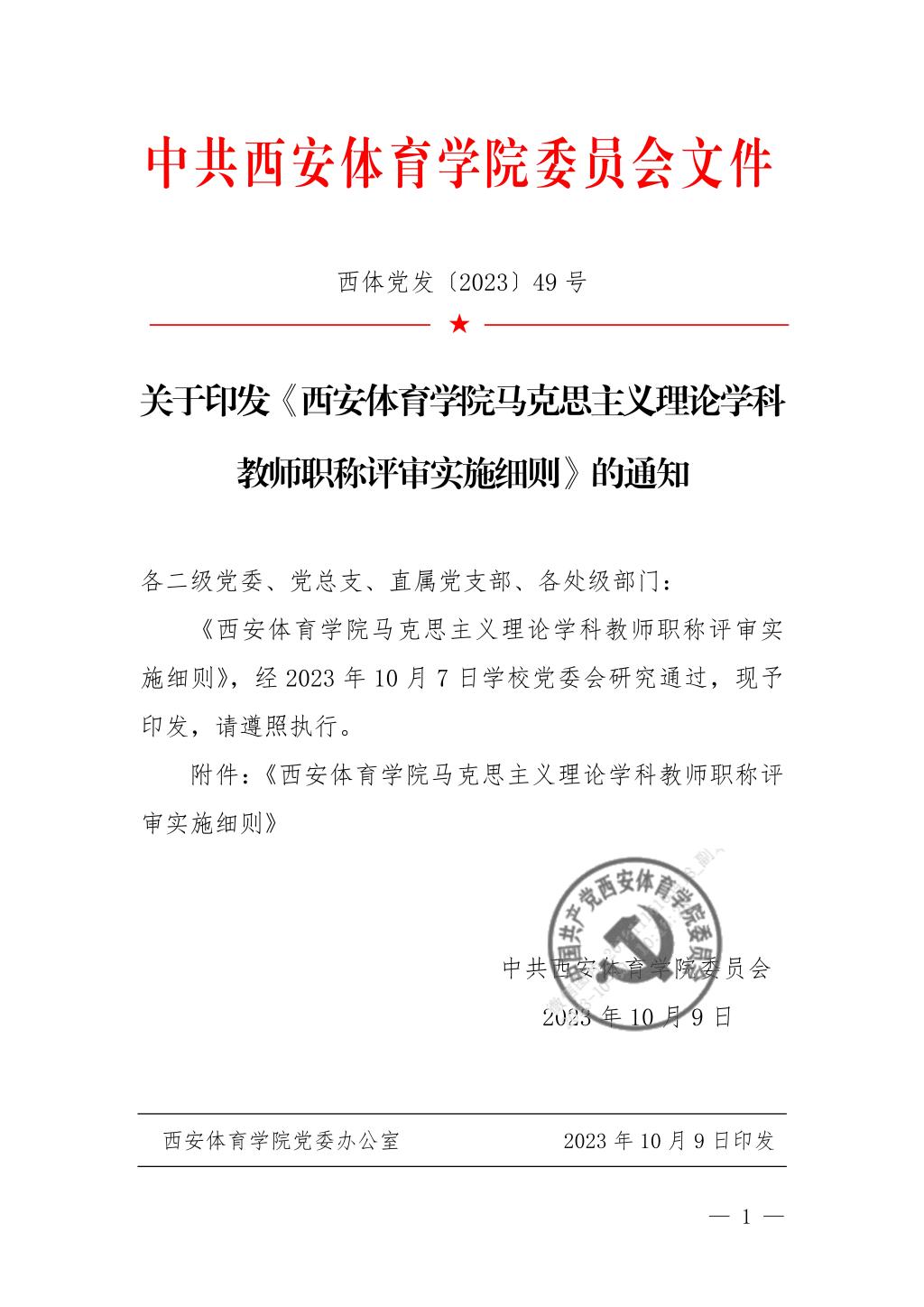 关于印发《西安体育学院马克思主义理论学科教师职称评审实施细则》的通知