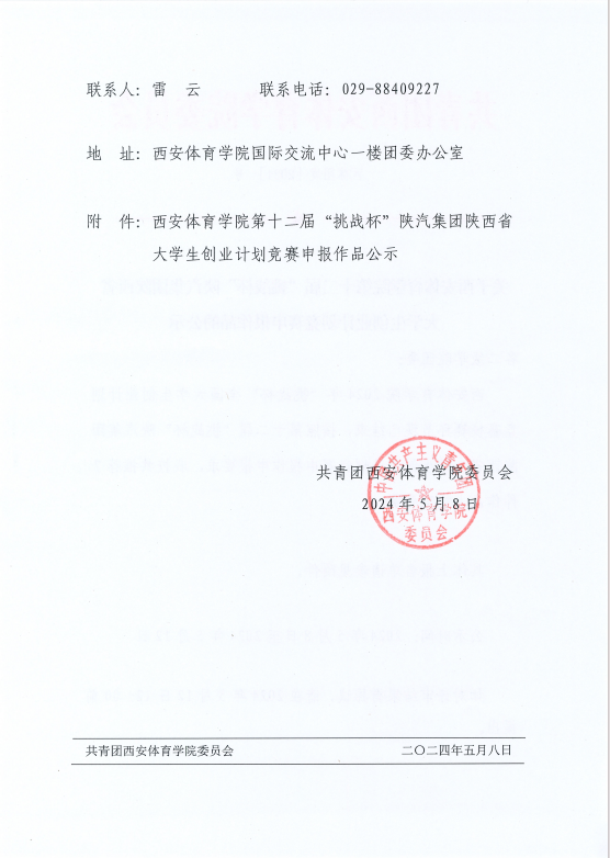 关于西安体育学院第十二届“挑战杯”陕汽集团陕西省大学生创业计划竞赛申报作品的公示.pdf