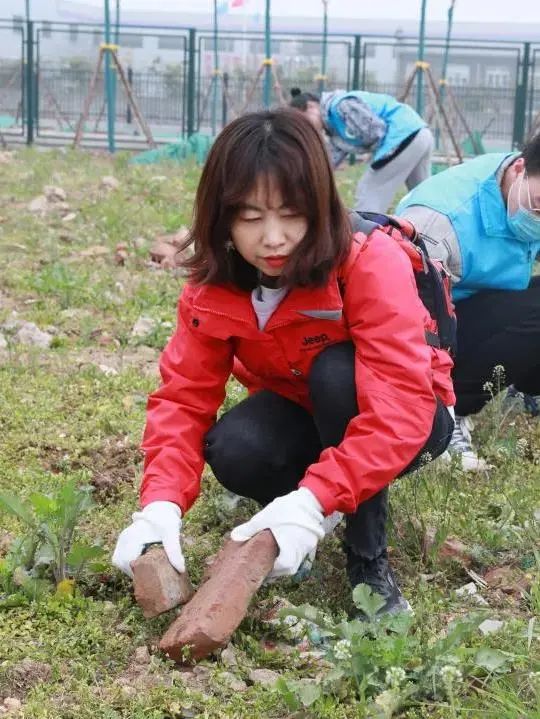 为积极落实传承雷锋精神的行动,我校青年志愿者与老师们在新校区进行捡拾工业废弃砖块的活动。大家纷纷进入工地,戴上干活用的手套,三五成群地捡拾着地上的砖块。不一会儿,大家的手套从白变黑,鞋底也都粘上了泥块,终于,一眼望去,地上聚起了一个又一个由废弃砖块构成的废弃物堆,同学和老师们圆满完成了这次活动。