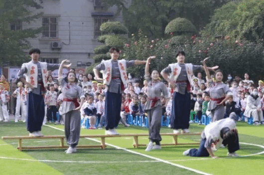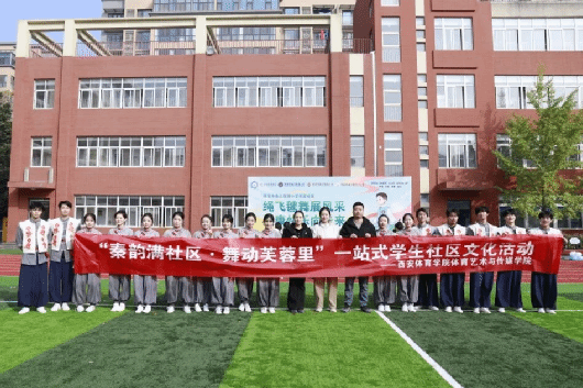 活动中,我院学子为曲江南湖小学带来了极具特色的原创舞蹈《秦怀》红色体育节目。