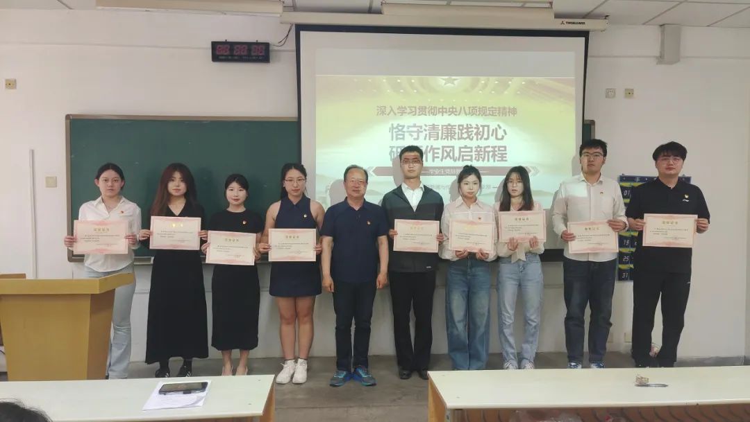 活动伊始,党委书记马增强以党课形式开展党性教育,首先向圆满完成学业的毕业生党员送上祝贺。他细数大家在校期间的奋斗足迹:在党组织活动中勇挑重担,在志愿服务里传递温暖,在学术竞赛中突破自我。“作为新时代党员,清廉是立身之本,中央八项规定是行为明镜。”马书记字字千钧,对毕业生党员提出“三个坚守”:坚守理想信念,在大是大非前站稳政治立场;坚守人民立场,以公仆之心践行服务宗旨;坚守奋斗底色,用实干担当锤炼过硬作风。他特别告诫,无论未来扎根传媒行业、投身体育事业,还是奔赴其他领域,都要以中央八项规定为标尺,坚决抵制享乐主义、奢靡之风,永葆共产党人清正廉洁的政治本色,以清正廉洁的品格和扎实的工作作风,在时代浪潮中贡献青春力量。