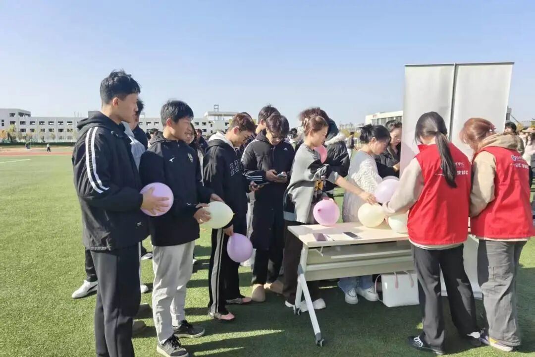 成为大家释放压力的“快乐驿站”。同学们拿起马克笔,将烦恼轻轻写在气球上,随着“3、2、1”的呼喊声,大家欢声笑语取代了焦虑愁绪;一旁的微笑打卡墙前,大家摆出搞怪又治愈的姿势,用镜头定格此刻的轻松与喜悦,让快乐在快门声中无限传递。