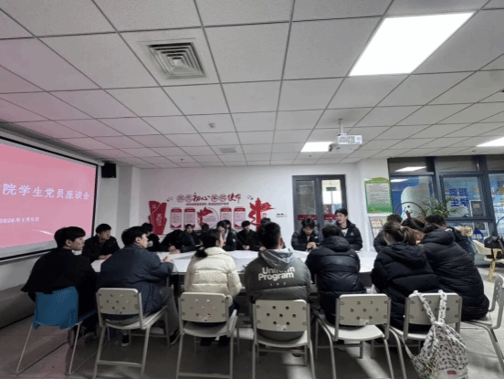 2026年1月9日,我校“一站式”学生社区组织召开学生党员座谈会,旨在充分发挥学生党员先锋模范作用,凝聚校园建设合力,推动学校高质量发展。座谈会由学工部思想教育科谢千老师主持,各年级学生党员代表参会,围绕党员作用发挥、校园建设等议题深入交流研讨。