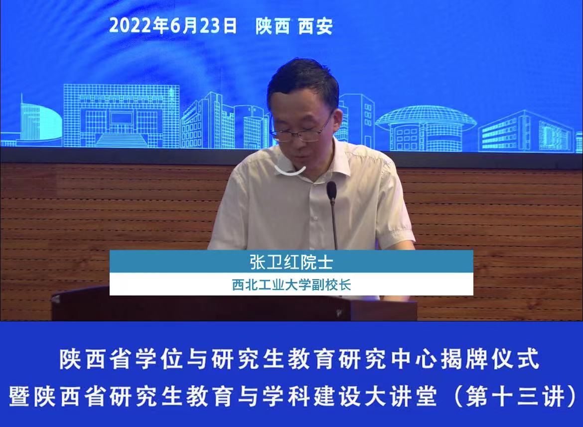 2022 年 6 月 23 日在西北工业大学友谊校区国际会议中心举行陕西省学位与研究生教育研究中心揭牌仪式暨陕西省研究生教育与学科建设大讲堂 (第十三讲)。本次采取视频会议形式进行,主会场设于西北工业大学。西安体育学院校领导、研究生部全体导师、全体工作人员以及全体研究生出席本次线上报告会。
