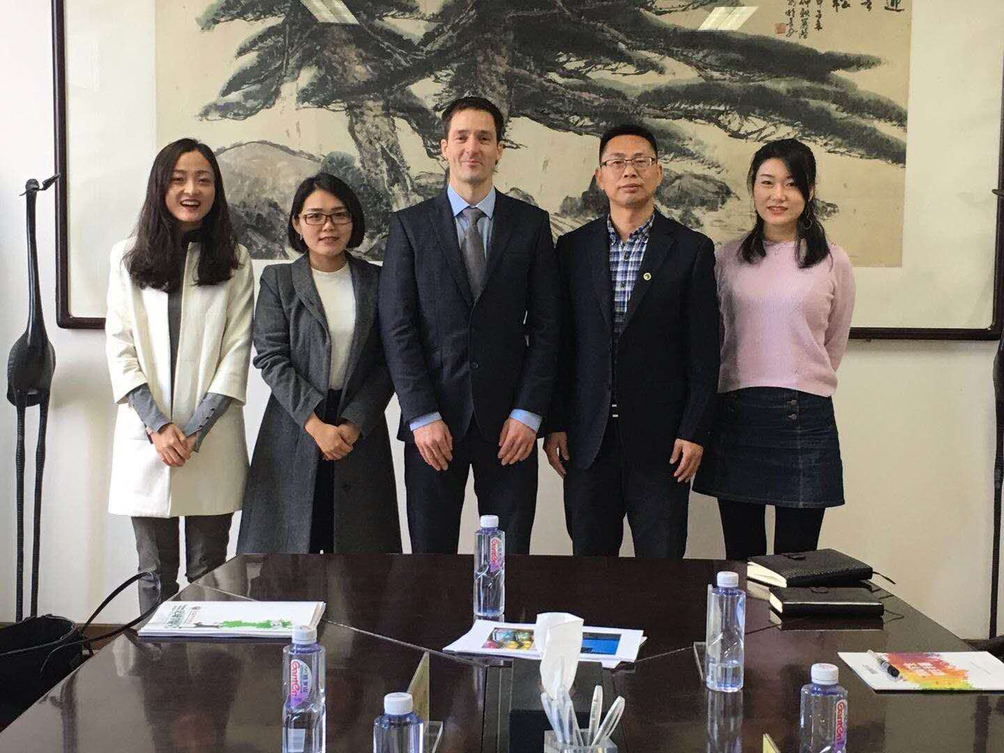 2018年3月12日上午,英国德比大学专员James Mitchell、侯林林,英国英中贸易协会西安代表处首席代表王哲辉一行来访我院,足球学院院长朱军、办公室主任岳志铁、国际交流负责人卢葭琪参加了座谈交流会,双方就足球训练与教学合作事宜进行交流。