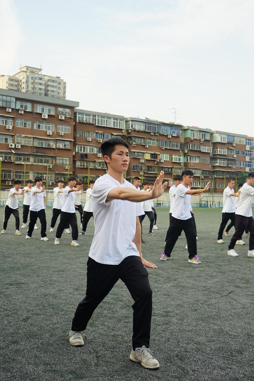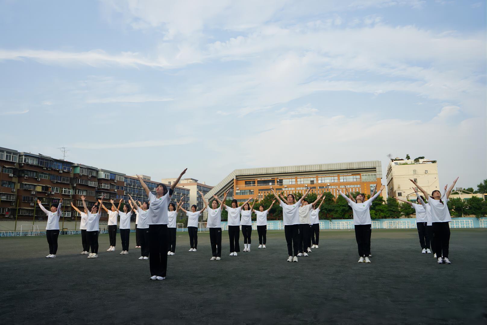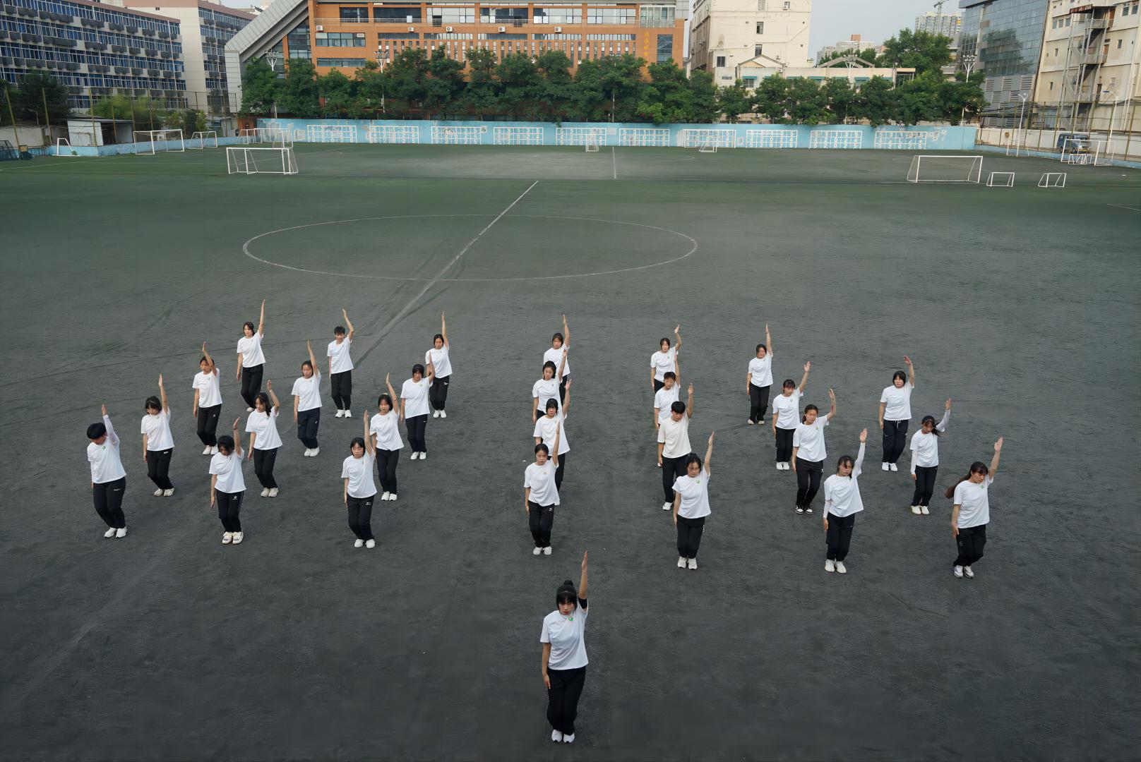 院长席海龙担任裁判长,宋辉、高巍、唐铁锋及特邀嘉宾肖文蔚四位老师担任评委。汇报表演在党总支书记姜梅宣布开始之后,3个班级按照抽签顺序依次,进行了口令、队列队形、中学生广播操、太极拳及健美操的演练。