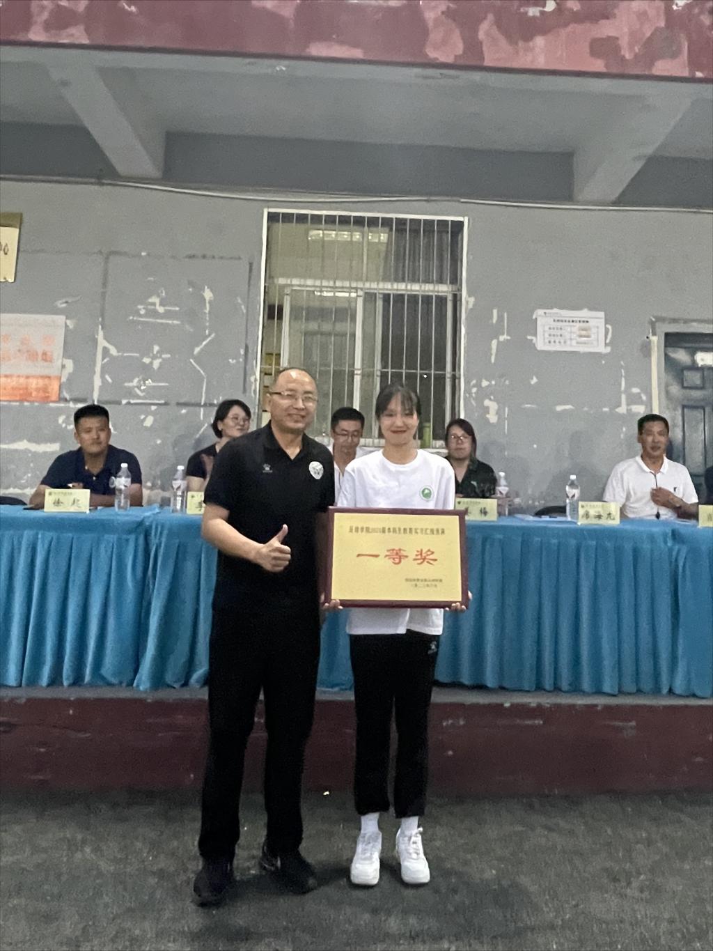 比赛结束后,由裁判长席海龙教授宣布本次汇报表演成绩。2020级3班获得团体一等奖,1班、2班获得优胜奖。2020级3班刘潇月同学获得个人教学实践比赛一等奖,2020级3班宋若琪同学获得二等奖,2020级1班刘志伟同学获得三等奖,2020级2班王嘉峰、杨小周同学、2020级1班房临瀚获得优胜奖