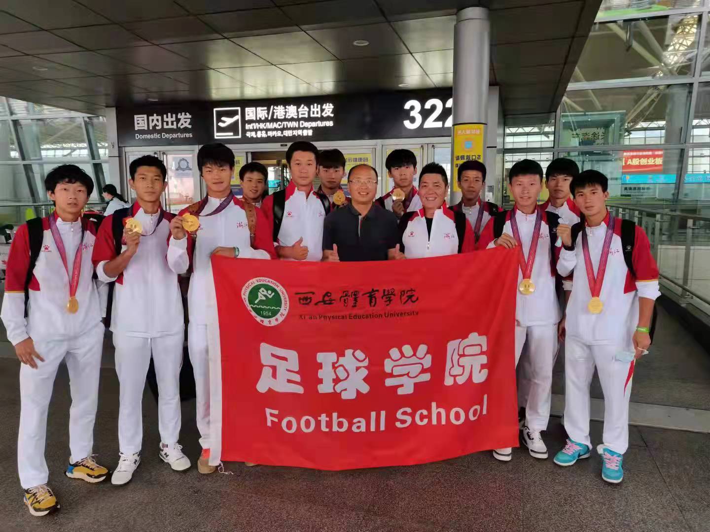 9月18日,第十四届全国运动会足球项目男子U20组决赛在陕西咸阳举行,我院学生刘承翰王晓峰、陈永杰、谭洋、泮禹升、金忆杭、王宇辰、吴笑阳、尹杰、赵越政代表浙江队获得金牌。五至八名排位赛中,我院学生尚志军代表陕西队获得第七名。