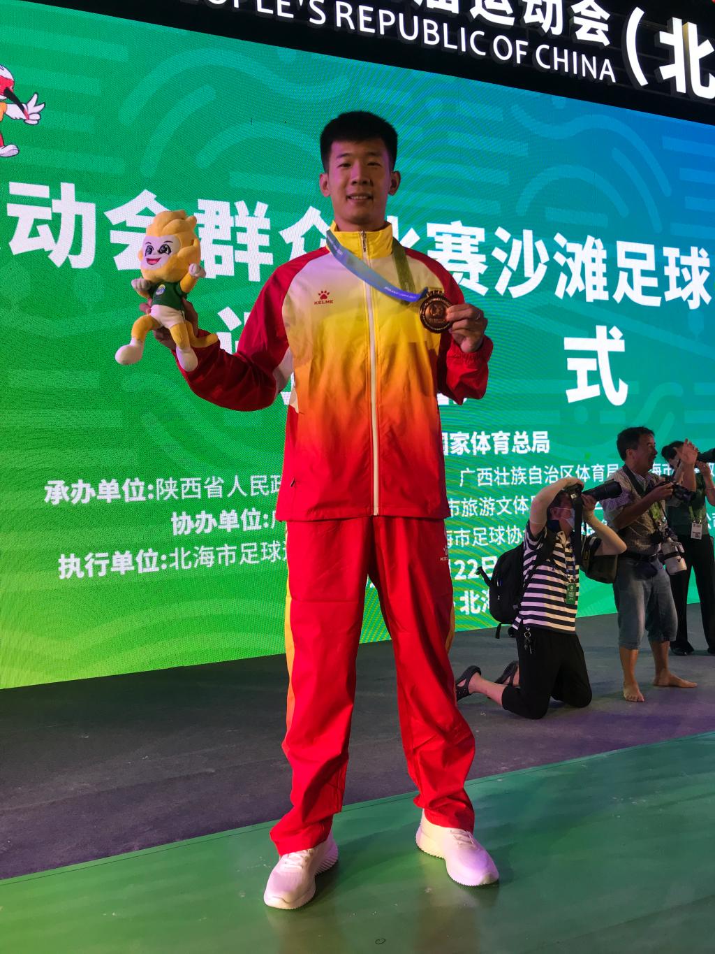 9月26日,第十四届全国运动会群众比赛足球项目沙滩足球男子组比赛在广西北海举行,我院学生郭徐宸蛟作为助理教练带领陕西队获得了铜牌。
